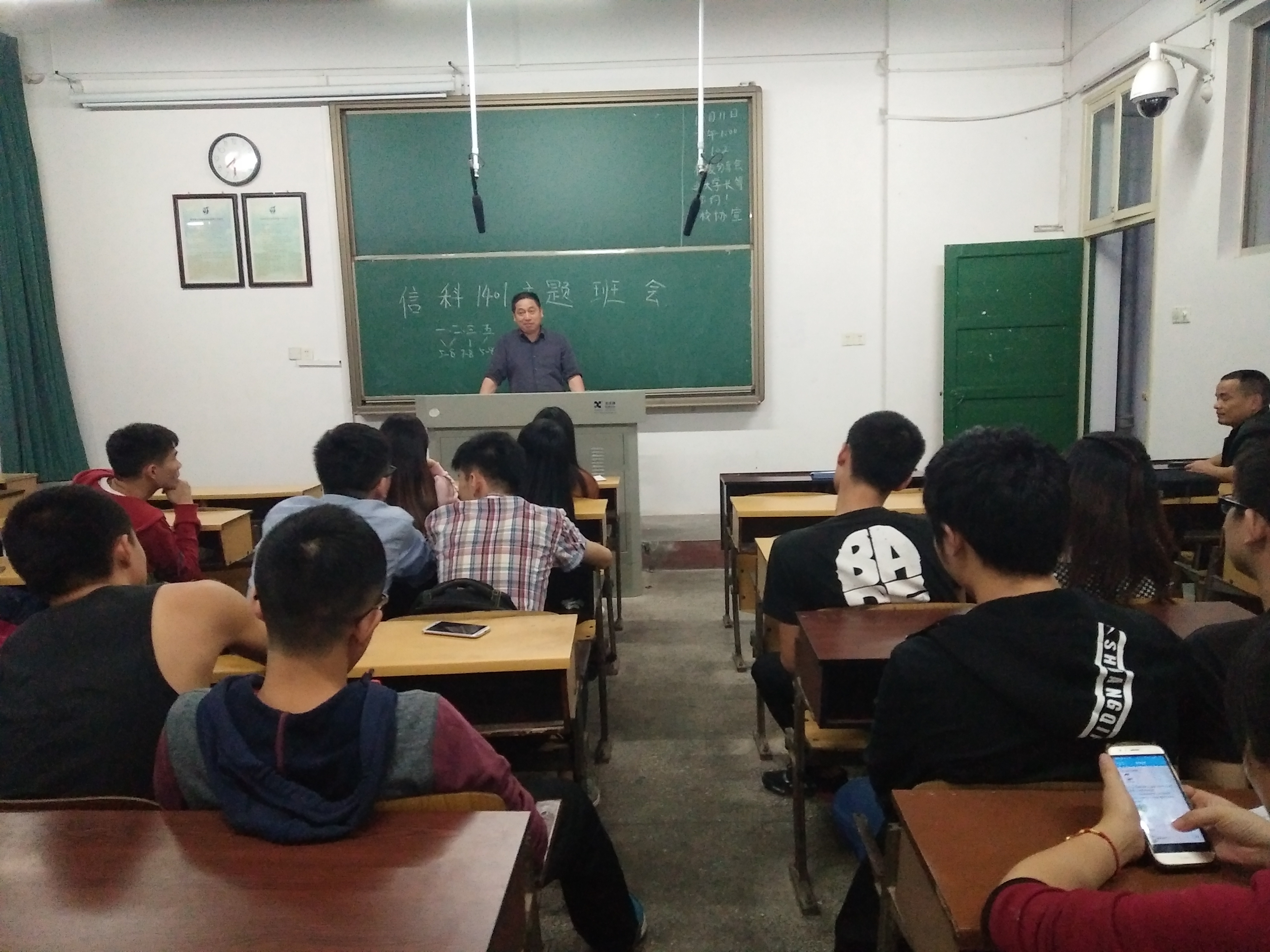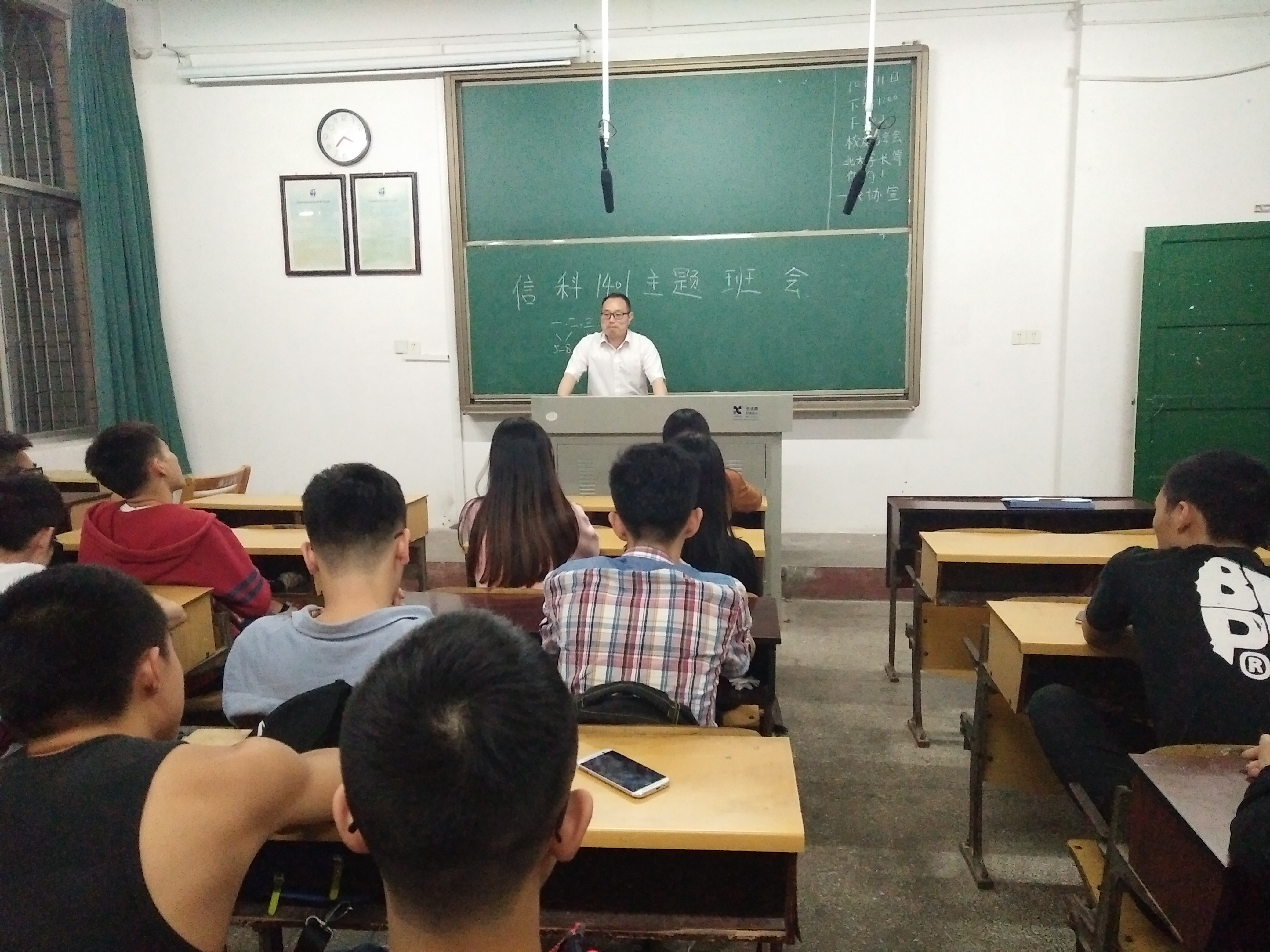 2016年10月9日19:00,信科系学风建设班会在B109召开。谢小良院长、罗智明副院长、姚落根主任、赵军产主任及信科1401班全体同学参加了此次主题班会。班会现场,大家围绕怎样建设优良学风展开了激烈讨论。