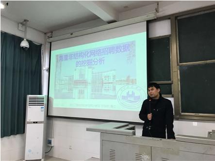 2016年11月22日下午2点30分,湖北工程学院数学与统计学院副院长张学新博士莅临我院,于F405举办题为“网络招聘信息的分析与挖掘”的讲座。本次讲李灿老师、张楚文老师、蔡宏宇老师、辛玲老师、李新富老师以及部分数学与统计学院的学生聆听了此次讲座,现场座无虚席。