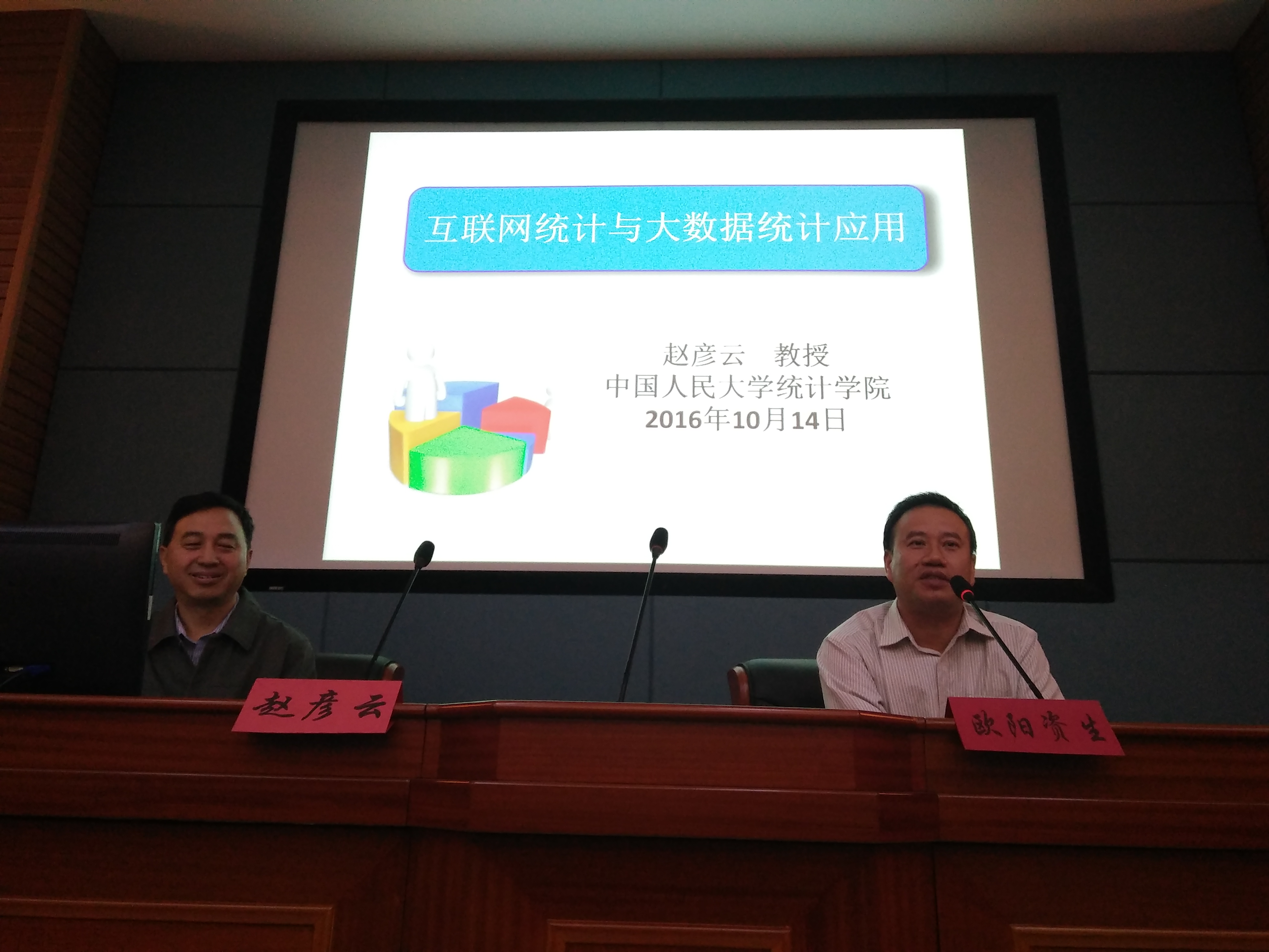 由我院和学校科研处联合主办的《互联网统计与大数据统计应用》麓山大讲堂专题讲座于2016年10月14日晚7点在F201开讲,主讲人是中国人民大学统计学院院长赵彦云教授。统计系主任李梦觉教授、蔡宏宇教授等老师以及全体统计学专业同学参加了此次讲座。