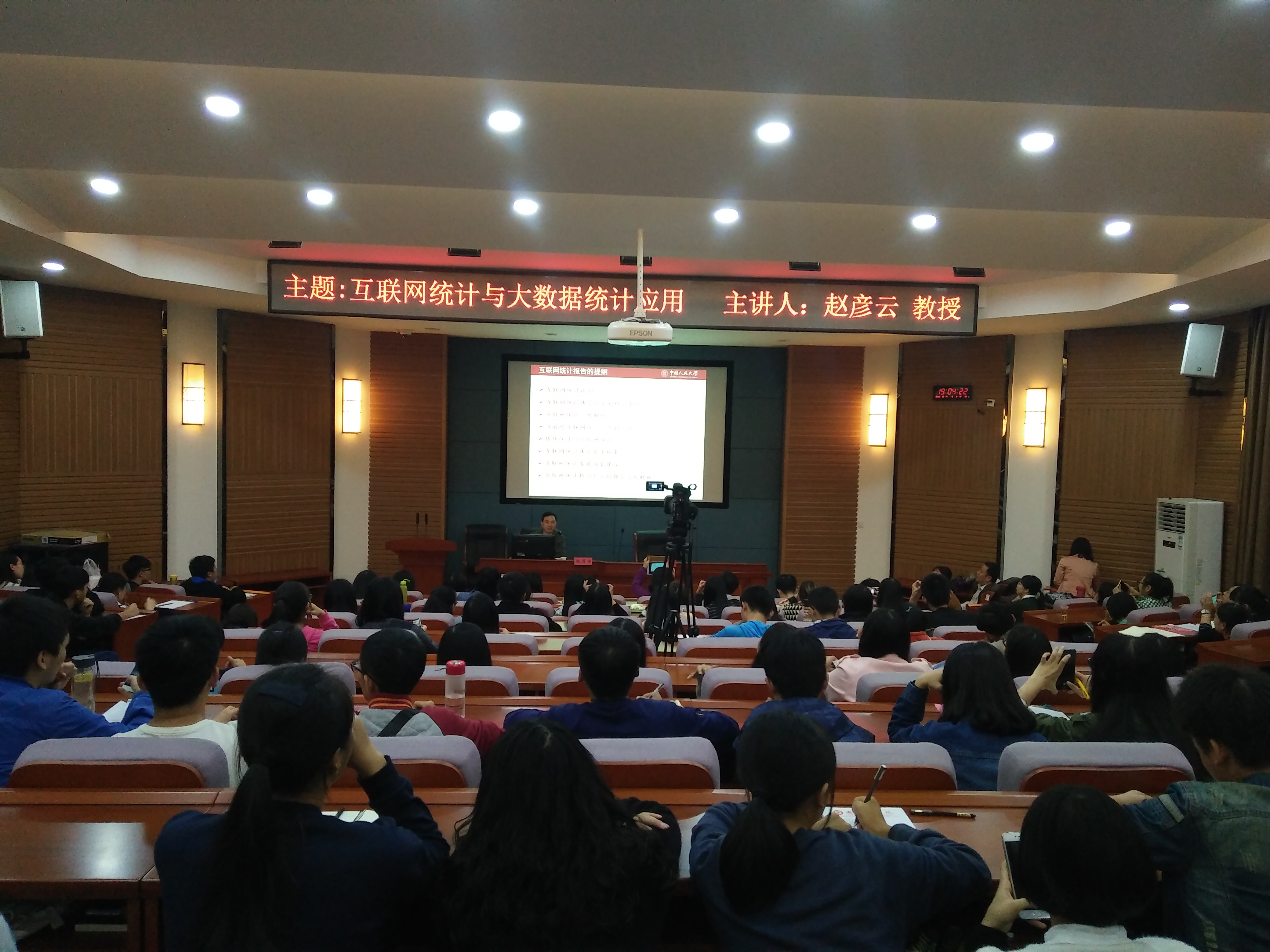 赵教授先是向大家着重讲解了互联网统计,从它的变革源头,讲到演化基础,最后通过三维解析了现在的互联网新统计体系,具体介绍了互联统计,互通统计,互动统计。一目了然的解析图让同学们耳目一新,收获多多。紧接着,赵教授又向大家罗列了当今互联网统计研究所追求的科学要点,并总结了现在的一些互联网统计方法,最后,赵教授向大家着重强调了统计在互联网大数据云计算的首要设计地位,公共大数据统计快速发展,已经被列入国家大数据战略,获得国务院一系列政策支持,统计改革现今具有前所未有的全面性和深入性,希望大家从中能够把握住机会。