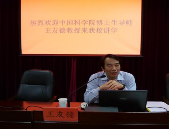 2015年10月29日下午3:00至5:30,中国科学院数学与系统科学研究所研究员王友德应邀来我院作主题为“数学的直觉与认知”的专题学术讲座,讲座在二办公楼301会议室举行。讲座由数学与统计学院院长谢小良教授主持,研究生院院长周鲜成教授、信息与计算科学系主任姚落根博士以及我院教师和各年级学生到场听报告。